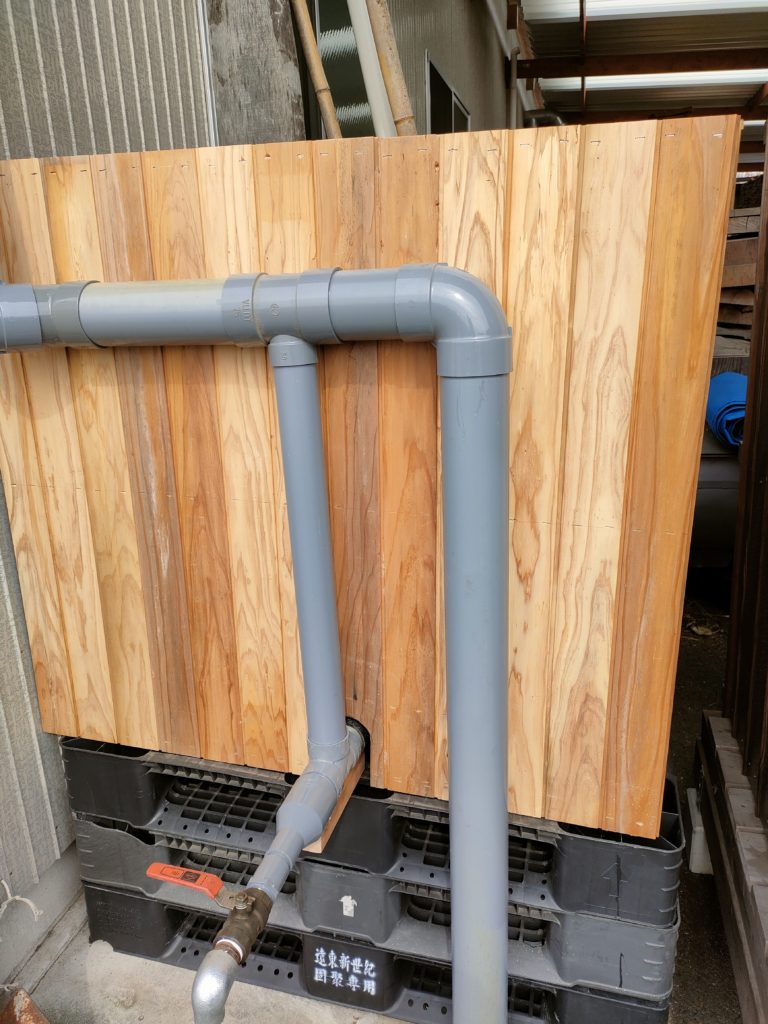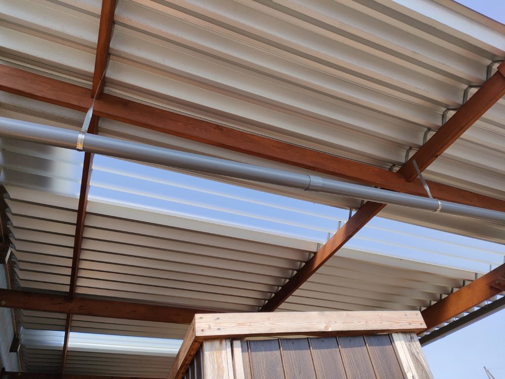 縦樋も流れが良くなるようにしました。今まで勾配がゆるすぎて重さでたるんで水が溜まってたみたい。パイプ外したらザバーと横顔にかかってしまった。春のポカポカ陽気で良かった。
