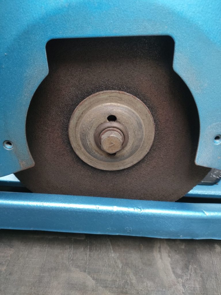 高速切断機は非常に便利で多用しますが、切断機砥石がまだ大きい状態でも交換しないといけないのが欠点の1つ。