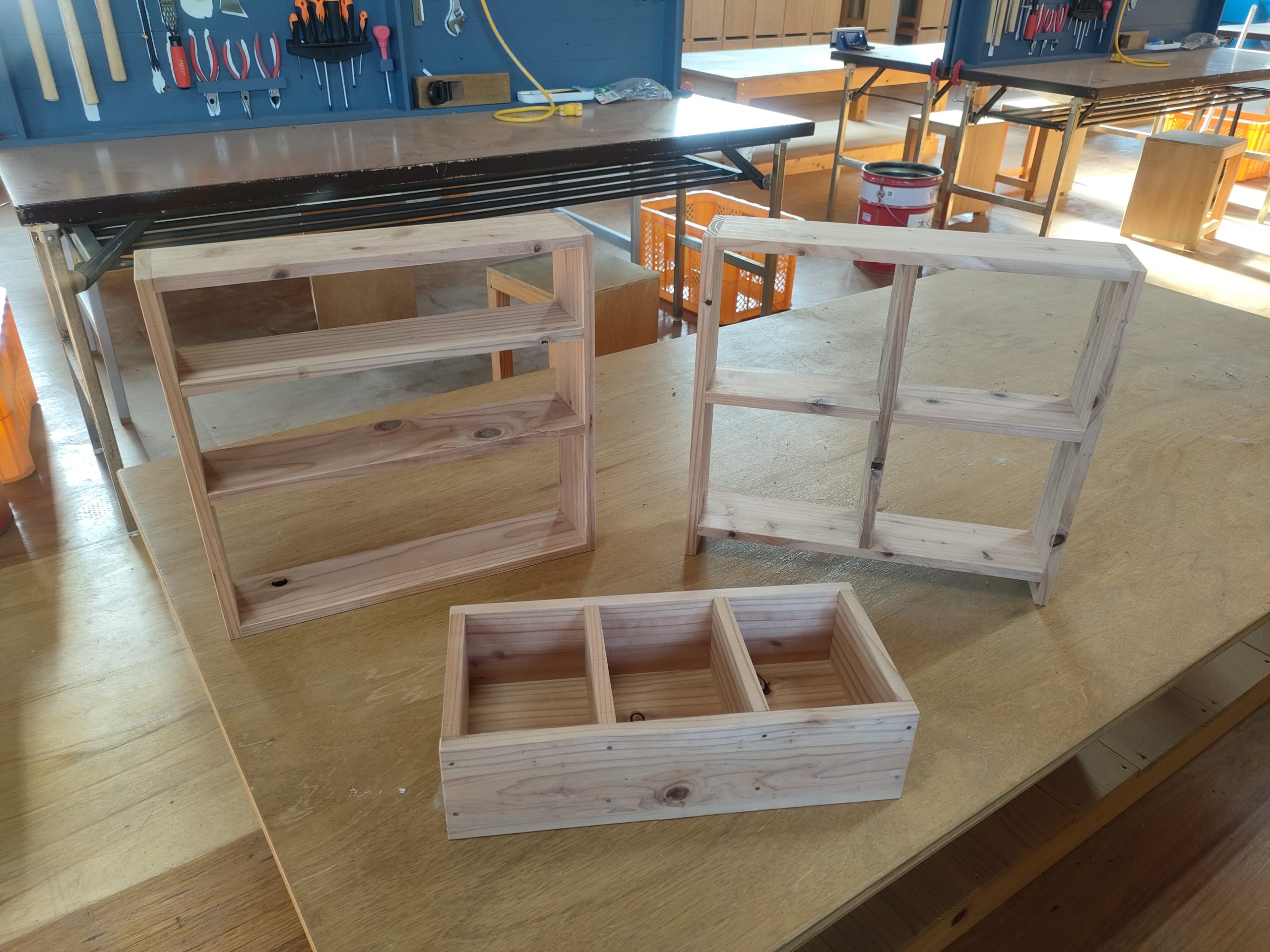 リクエストにお応えし、レベル1-1に簡単キットを用意。 最新 2024.03.162024.03.19 レベル1-1 は施設説明と基本道具の使い方。 のこぎりと釘打ちをやっていただくのだけど、作る物があったほうが楽しくて身に付くとのことで、簡単キットを用意しました。 板6枚と釘を使って、好きなものを作ります。写真の3品はサンプルです。みなさんお好きにアレンジしてください。ミルクペイントも用意してあるので、軽く塗るだけでビックリな仕上がりになります。是非お越し下さい。板だけでも販売してるので、家族で3つとかも有りかもですね〜 アンティーク仕上げ