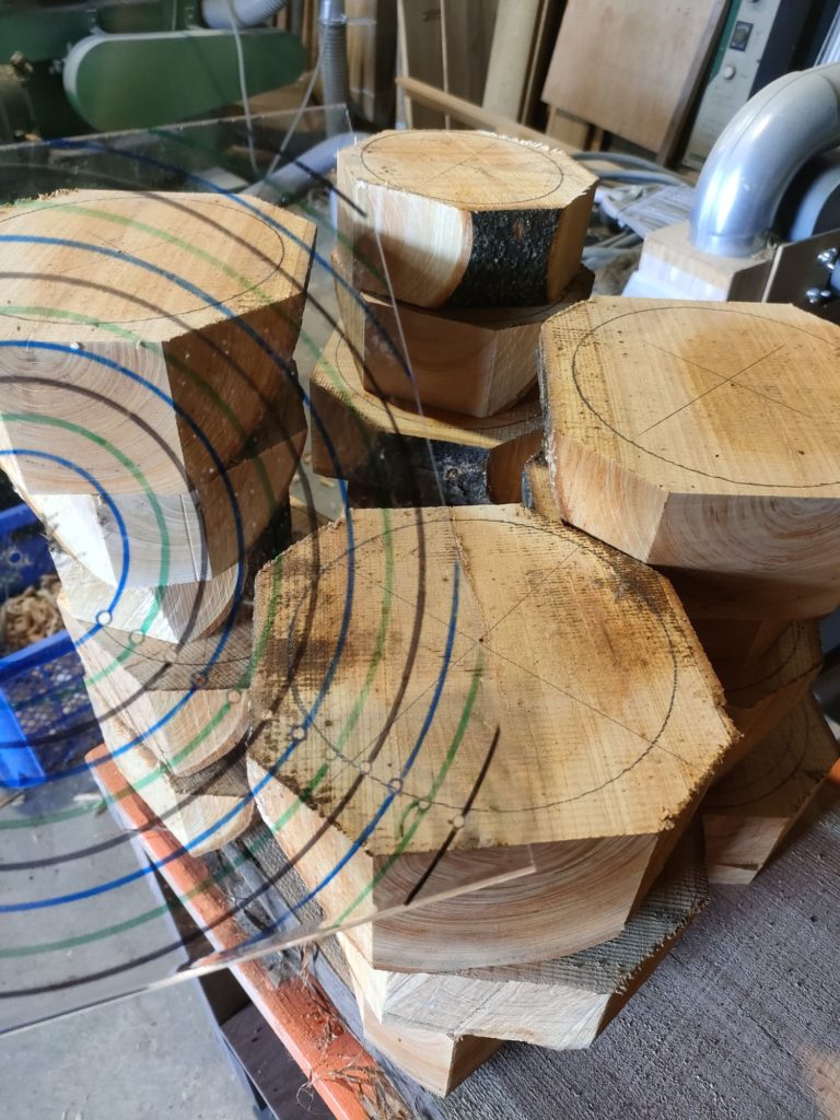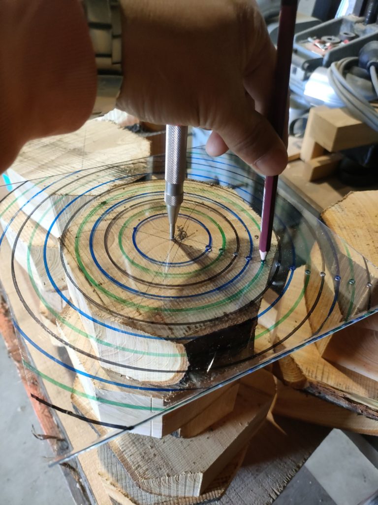 四角いけど円盤ジョーギ 最新 2024.04.13 円盤定規を自作しました。 旋盤材料の墨付けに超便利です。 これに気付く前は材の端と端の中心を出して適当にやってたけど、この定規にしたら4サイズにまとまりました。 1センチごとに線が書けます。直径にすると2センチか。 明日から大きい材をやるので、そちらもたのしみです。