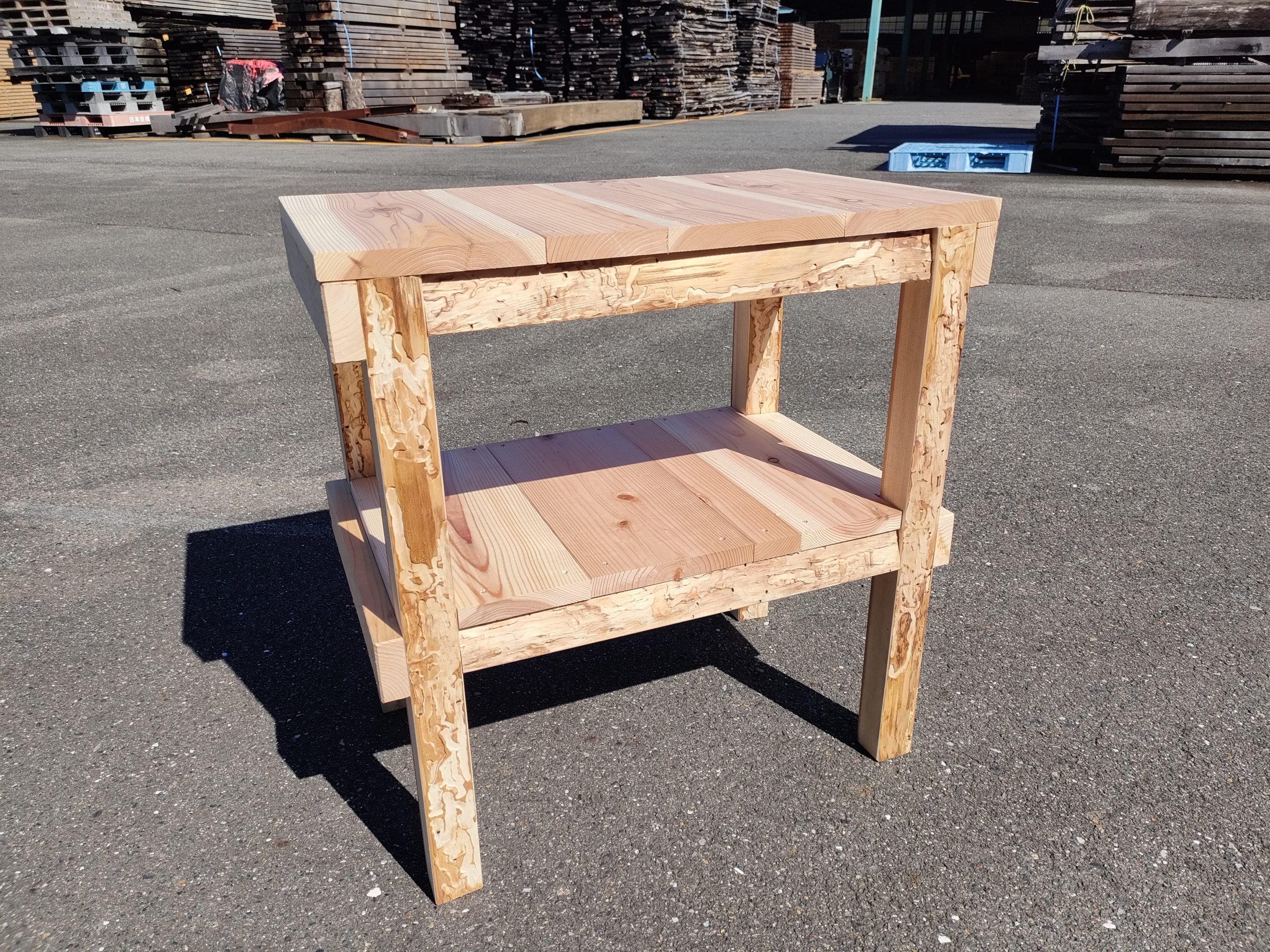 アンティークテレビ台 最新 2024.10.11 皮付き丸太を製材してそのまま天干すると、皮の下の虫が活発に食します。穴も空きます。材木屋は不適合材の代表として、落として使いますが、一般人には逆に珍しくカッコいいみたいなので、試しにテレビ台の足にしました しばらく生で楽しんだ後、オールド塗装します